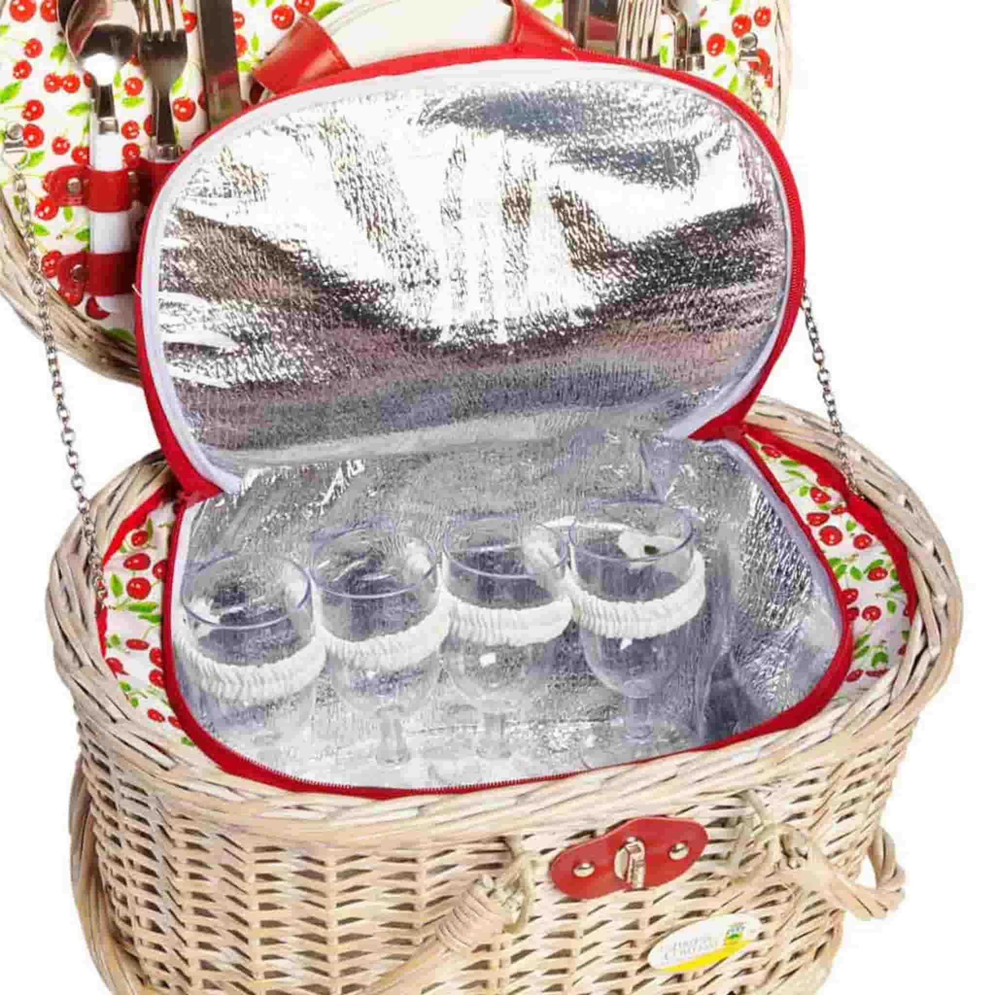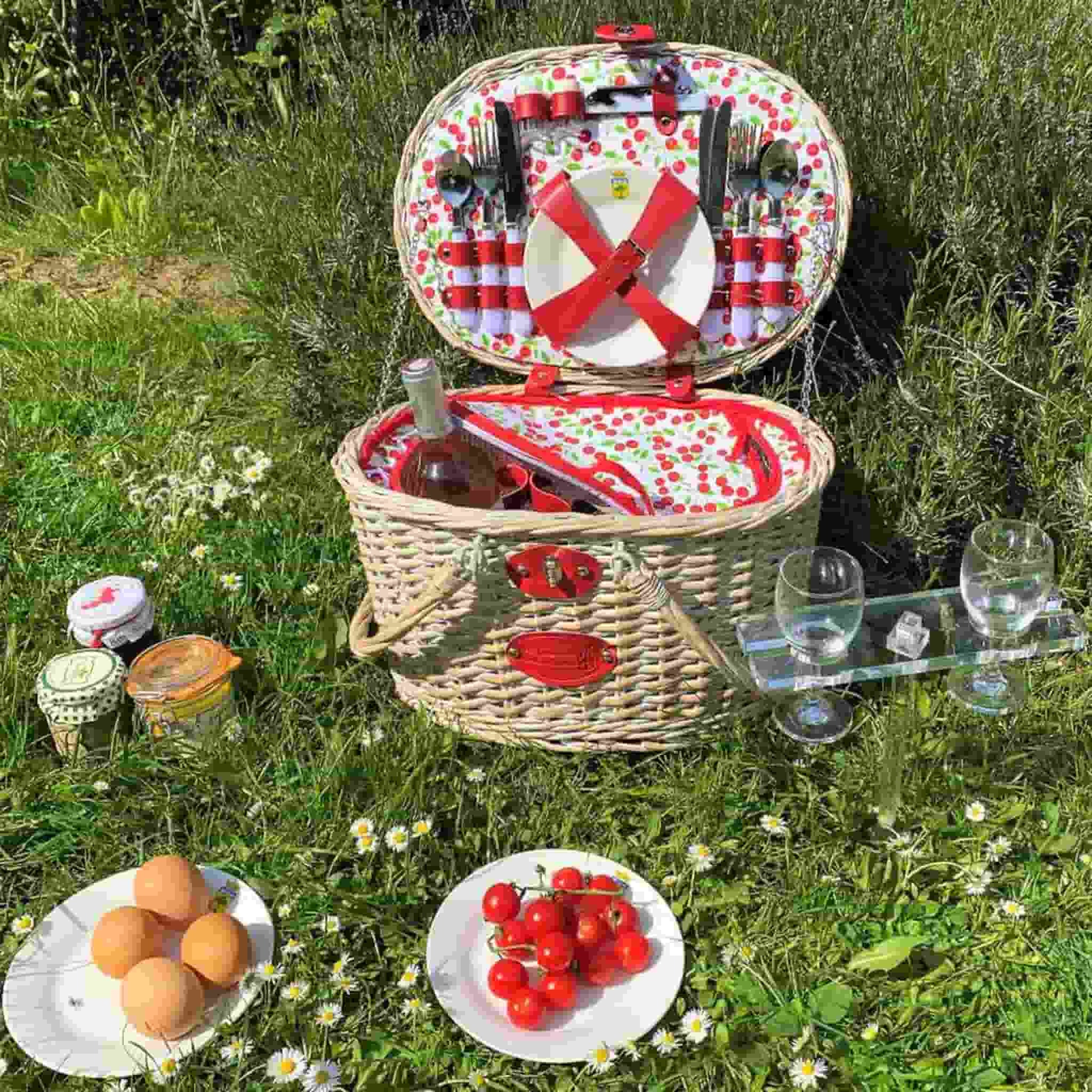 This charming picnic hamper features an insulated compartment with a zipper to keep food and drink cold. Fill it with all your favourite picnic foods, from soft cheese and crusty bread to Scotch eggs and sausage rolls. Embrace the cherry theme and use it to transport a bakewell tart or Black Forest gateaux!